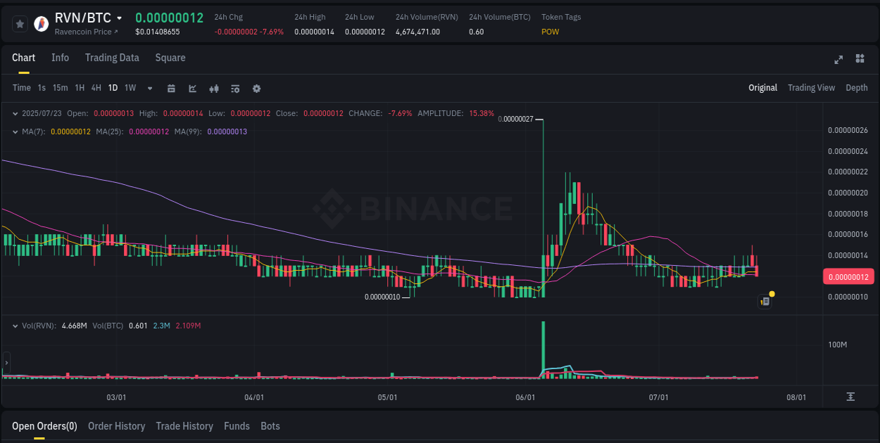 This is a report of 🚀PUMP 👉 #RVN/BTC (Binance)👈You can follow by this link and watch the 🚀Pump process in real time on Binance